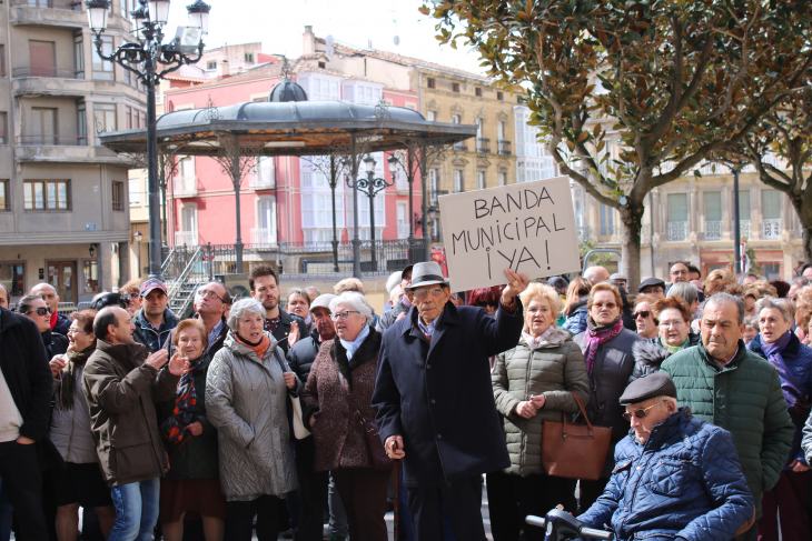 Más de 400 personas, según los cálculos de los asistentes, 200 según la Policía Local, se han dado cita en la Plaza de la Paz para mostrar su apoyo a los componentes de la Banda Municipal de Música y pedir la dimisión del concejal delegado de la agrupación musical, Javier Redondo.