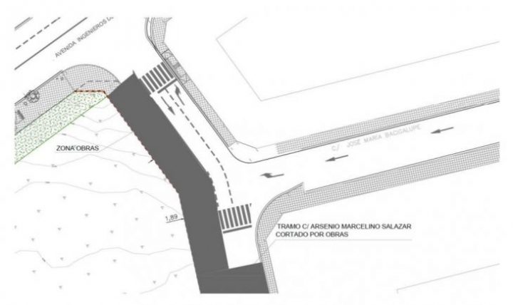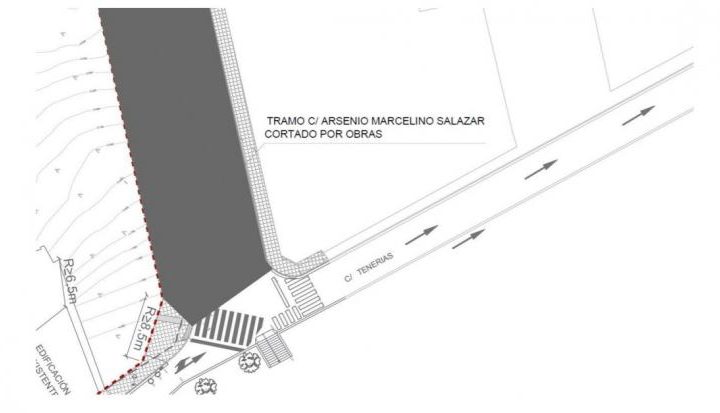 Calle Arsenio Marcelino Salazar: Hasta el final de obra, estará cortado el tramo entre calle Tenerías y José María Bacigalupe, tras su finalización se convertirá en calle transitable en ambos sentidos».