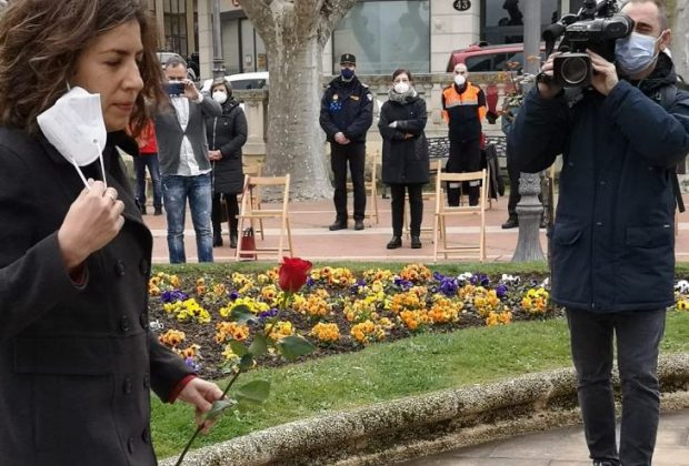 La alcaldesa de Haro, Laura Rivado, como máxima autoridad municipal ha presidido el acto de homenaje a las víctimas de la pandemia, con motivo del primer ...