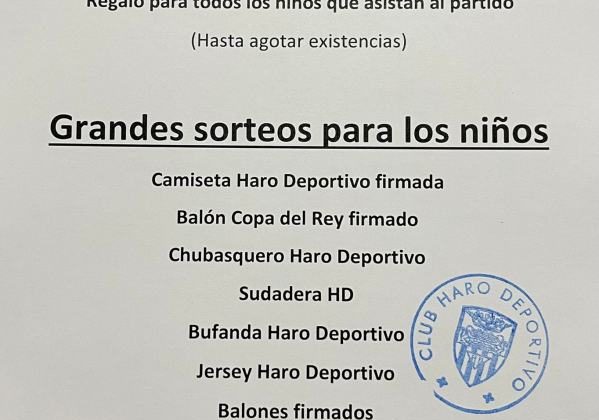 Entrada gratis hasta los 12 años, sorteos y un regalo al acceder a El Mazo para ver el partido entre el Haro Deportivo y el Varea