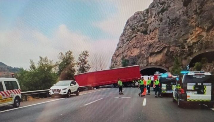 Nueve horas de retención en Pancorbo por la colisión de dos camiones en uno de los túneles