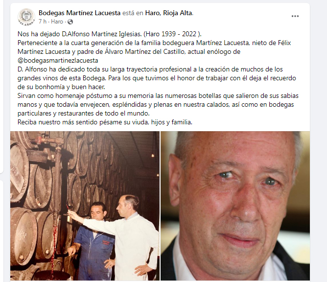 Fallece Alfonso Martínez Iglesias, perteneciente a la cuarta generación de la familia bodeguera Martínez Lacuesta