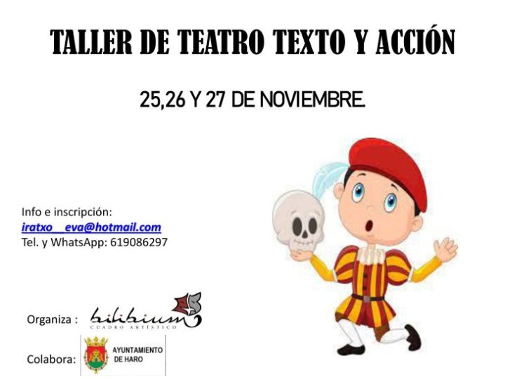 El Cuadro Artistico Bilibium, asociación teatral de Haro que lleva más de 20 años promoviendo la cultura en la ciudad, organiza un taller de teatro y acción , impartido por el actor, escritor y director Javier Tenías.
