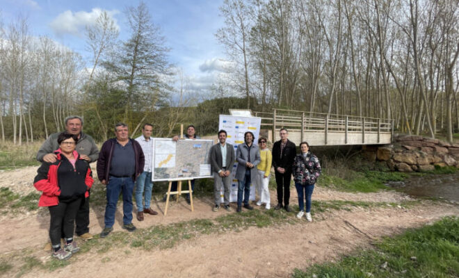 El consejero de Sostenibilidad, Transición Ecológica y Portavocía, Álex Dorado Nájera, y el director general de Biodiversidad, José Luis Rubio, han presentado en el Vado de la Reina sobre el Cárdenas, en Badarán, a los alcaldes de la zona esta iniciativa para convertir en ruta verde un itinerario separado de las carreteras convencionales, pensando en la seguridad de sus usuarios, y que comparte algunos tramos del Camino del Rey con alguna variación. Han asistido los alcaldes de todos los municipios que cubre la ruta: San Millán, Nájera, Cárdenas, Estollo, Berceo y Badarán