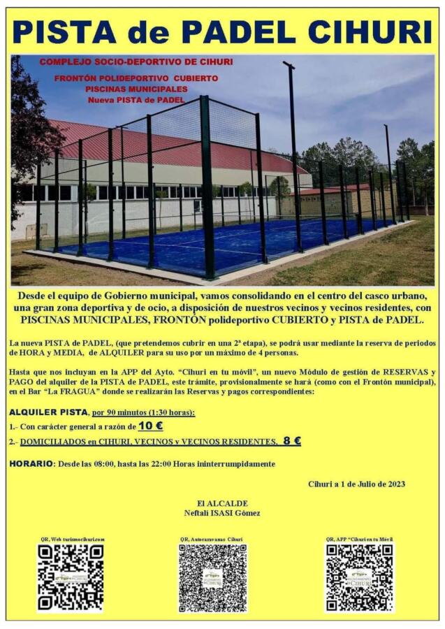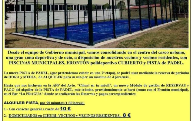 Home›Deportes›Cihuri pone en marcha un servicio de Pista de Pádel