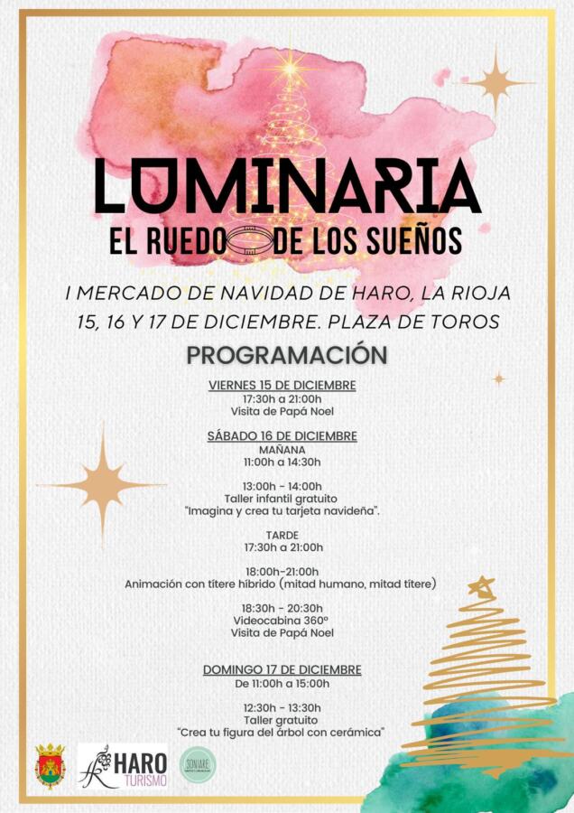 El I Mercado de Navidad de Haro LUMINARIA, el ruedo de los sueños, ofrece una experiencia inigualable llena de actividades emocionantes, y con la experiencia que aporta la Plaza de Toros como escenario singular, para el entretenimiento y diversión para todos los públicos los 3 días que dura (viernes, sábado y domingo).