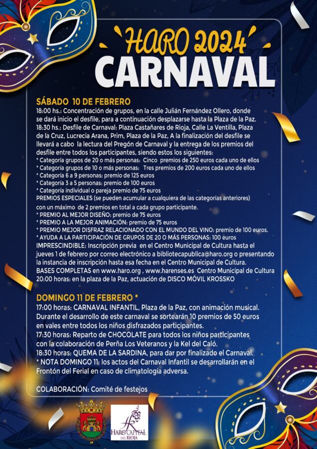 Son dos actividades que no figuran en el programa inicial del Carnaval 2024 en Haro y que se suman para ambientar las calles el sábado.