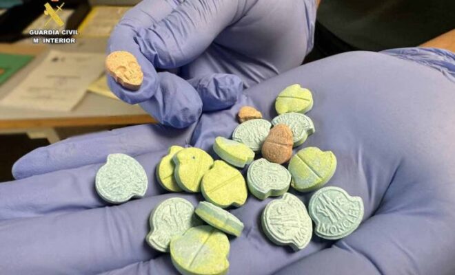 El detenido, un varón de 56 años, natural y vecino de Logroño, ocultaba en su zona pélvica y en una riñonera diecisiete pastillas y media de éxtasis, seis gramos de speed, 1,6 gramos de ketamina y 125 euros en billetes fraccionados.
