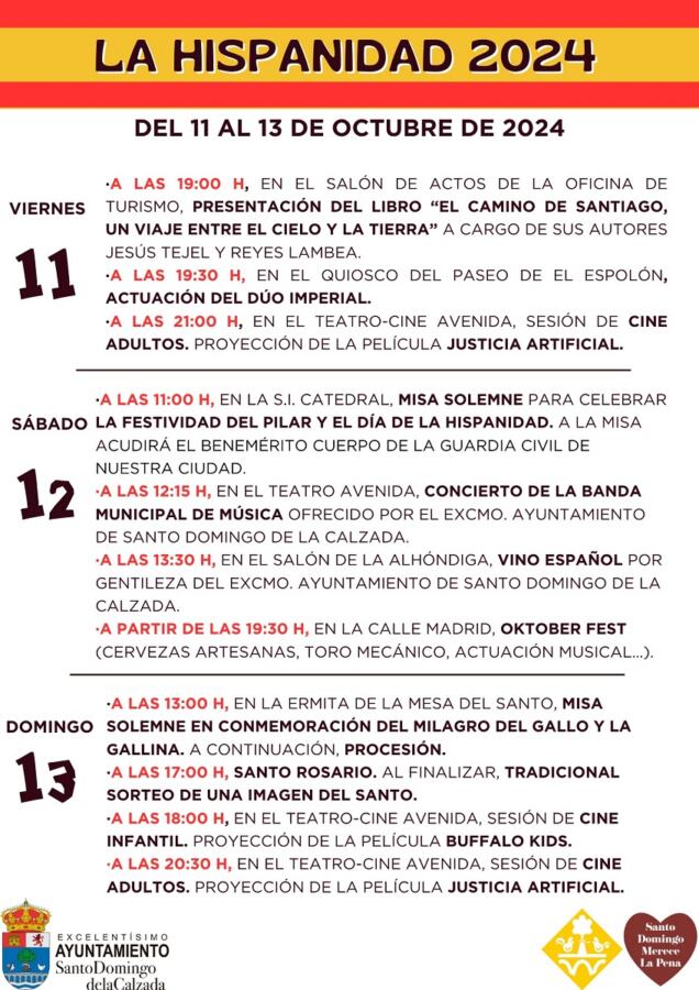 Desde la Concejalía de Cultura anuncian el programa de actos tradicionales, culturales y festivos en conmemoración de la Hispanidad, la celebración del Pilar y el 13 de octubre.