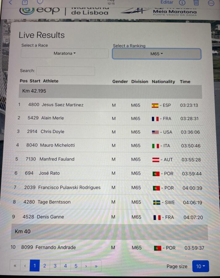 Jesús Sáez Martínez, de la Agrupación Deportiva Haro, primero en su categoría en la Maratón Internacional de Lisboa