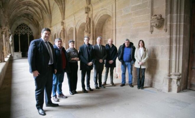 El presidente del Gobierno de La Rioja, Gonzalo Capellán, ha firmado en el Claustro de los Caballeros del Monasterio de Santa María la Real de Nájera, cinco convenios con otros tantos ayuntamientos del Valle de la Lengua con el objetivo compartido de seguir impulsando un turismo sostenible a través de la rehabilitación, mejora o creación de nuevos emplazamientos/infraestructuras turísticas en las localidades de Nájera, Azofra, Berceo, Estollo y Pedroso.
