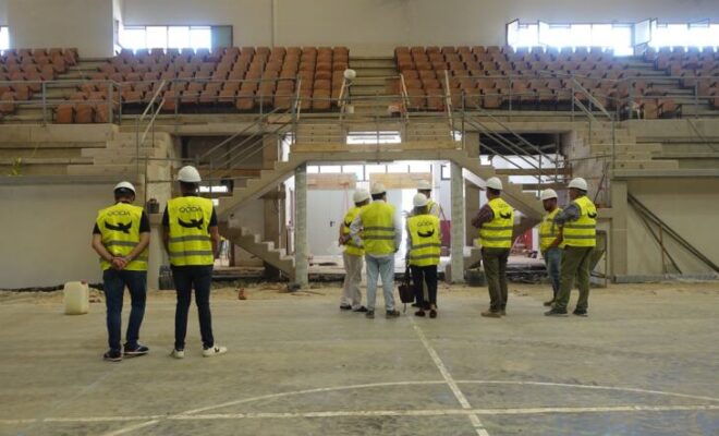 La alcaldesa de Haro visita junto al presidente de la Federación Española de Voleibol las obras de `El Ferial´