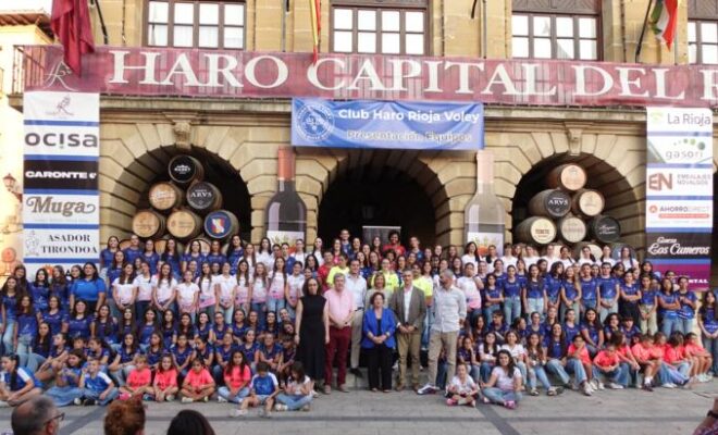 La alcaldesa de Haro, Guadalupe Fernández, en el acto, señaló que «el Haro Rioja Voley lleva 30 años haciendo historia. Fuisteis el primer club riojano en jugar en primera división. Hace apenas dos años, y en reconocimiento a esa trayectoria, recibisteis la Medalla de La Rioja. Y cada temporada transmitís los valores de equipo, convivencia y buenos hábitos a más de 100 niñas en Haro. Ahora, además, os proponéis conquistar Europa. Todo ello a base de trabajo, dedicación, pasión y, me atrevo a decir, también con una pizca de cabezonería.