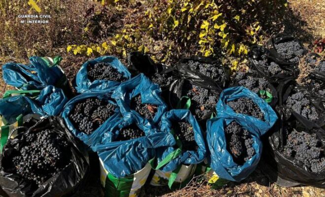 De manera inmediata, unidades del Servicio de Seguridad Ciudadana de la Guardia Civil se trasladaron al lugar de la incidencia, donde sorprendieron a varias personas junto a dos vehículos mientras vendimiaban una viña. En el interior de uno de los vehículos se localizaron aproximadamente 300 kilos de uva, y otros 200 kilos más se encontraban ya recolectados en el exterior.