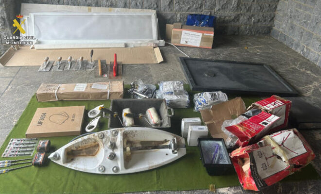 Uno de los propietarios, que fue avisado, se trasladó al lugar donde la furgoneta había sido interceptada y reconoció como suyos los efectos transportados. En consecuencia, los cinco ocupantes del vehículo fueron detenidos como presuntos autores de un delito de robo con fuerza.