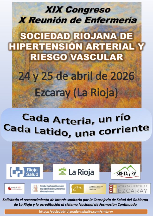El Teatro Real de Ezcaray acogerá los próximos días 24 y 25 de abril el XIX Congreso de la Sociedad Riojana de Hipertensión Arterial y Riesgo Vascular y la X Reunión de Enfermería, una cita orientada a la actualización clínica y al abordaje multidisciplinar del riesgo cardiovascular.