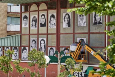 El colegio público invade artísticamente Labastida empapelando con fotografías espacios públicos y edificios