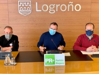 El portavoz del Partido Riojano (PR+) en el Ayuntamiento de Logroño, Rubén Antoñanzas, acompañado por los portavoces de la Plataforma logroñesa para la defensa ...