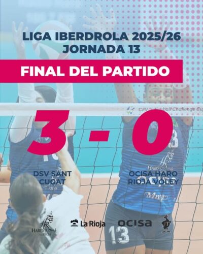 El OCISA Haro Rioja Vóley señala en sus redes sociales que «no pudimos llevarnos la victoria, pero seguimos trabajando, ¡vamos, azules!»