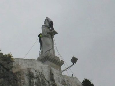 Un dron descubre daños en el rostro de la imagen de San Felices en Bilibio