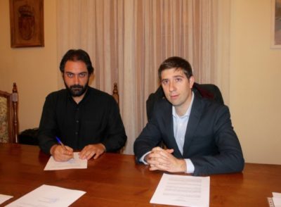 El alcalde de la localidad y el director de la empresa en La Rioja han suscrito un contrato de alquiler de los terrenos donde ...