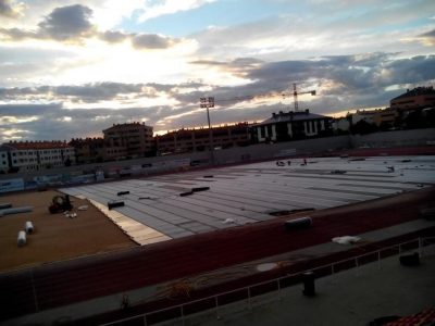 La tormenta de esta semana retrasa los trabajos de renovación del césped del campo de fútbol de “El Mazo”