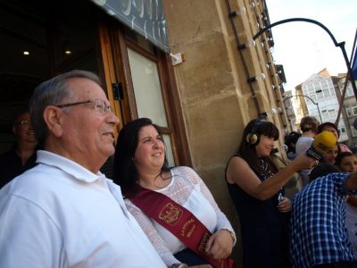 A las doce del mediodía se ha producido el disparo del cohete anunciador desde el balcón del Ayuntamiento.