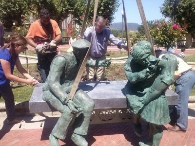 La escultura de homenaje a los mayores ya se ha colocado en los Jardines de la Vega