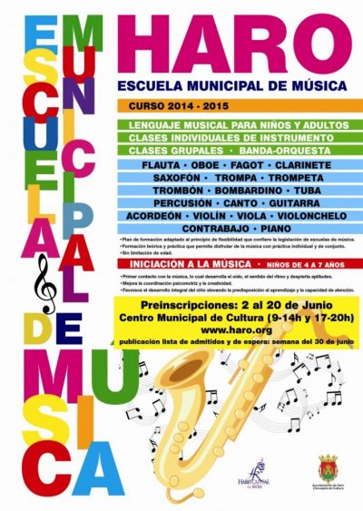 Hasta el 20 de junio se mantiene abierta la preinscripción de la Escuela Municipal de Música de Haro