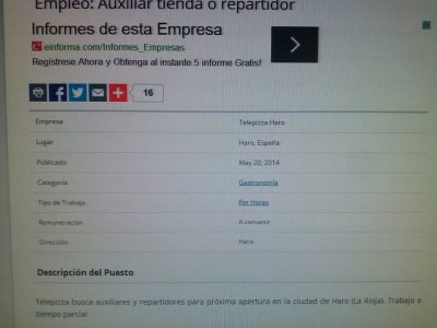 De hecho, varias páginas de búsqueda de empleo en internet ya contienen ofertas de trabajo para auxiliares y repartidores, a tiempo parcial.