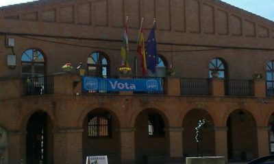 PSOE, UPyD y PR+ denuncian la colación de una pancarta electoral por parte del PP en la fachada del Ayuntamiento de Grañón