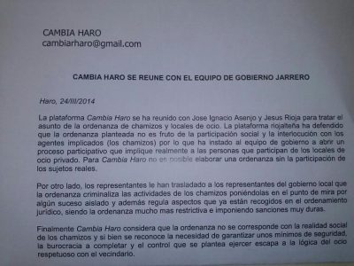 El primer teniente de alcalde ha valorado como `muy positivo´ su encuentro con la plataforma Cambia Haro.