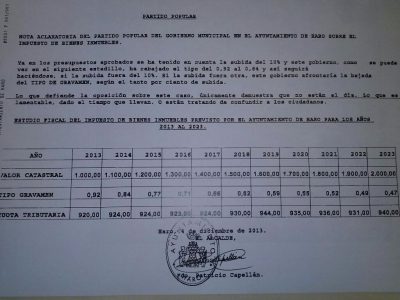 PP: “El tipo de gravamen bajará en cada uno de los ejercicios, hasta situarse en 2023 en el 0´47”