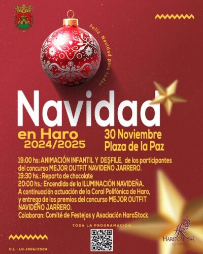 Haro enciende su iluminación navideña este sábado a las ocho de la tarde en la plaza de la Paz