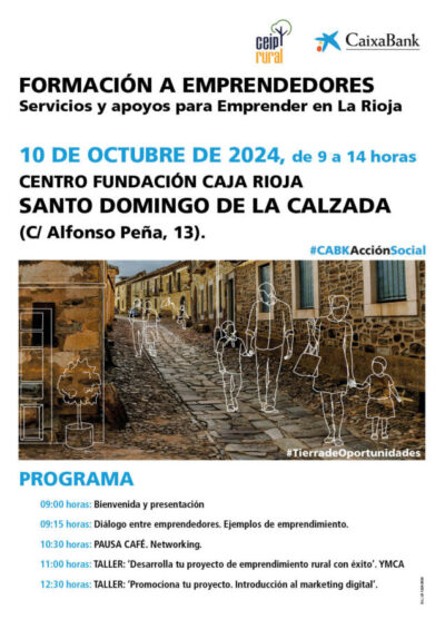 CaixaBank y CEIP RURAL organizan el próximo jueves 10 de octubre una sesión de formación dirigida a emprendedores que tendrá lugar de 9:00 a ...