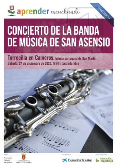 El sábado 27 de diciembre tendrá lugar un concierto en Torrecilla protagonizado por la Banda de Música de San Asensio. Será en la iglesia ...