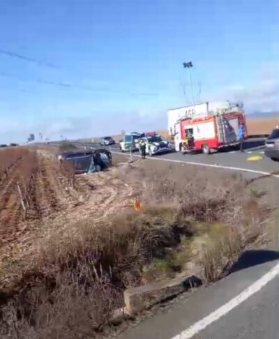 Dos personas son trasladadas al San Pedro tras la colisión de dos turismos en la N-232 en el cruce de Zarratón