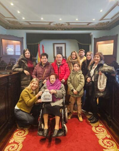 Rodeada de su familia, la homenajeada ha recibido el `Jarro´ de la ciudad.