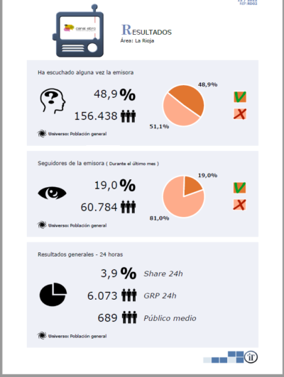 El estudio de audiencia realizado en diciembre de 2022 por la empresa Infortécnica Audimedia indica que «Canal Ebro Radio, es conocida por el 48,9 ...