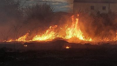 Un fuego quema la maleza en los accesos al Cerro de Santa Lucía en Haro