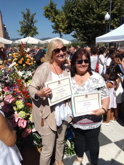 Carmen Ruiz, Paty Alonso y Sandra María Palacios, ganadoras del concurso de piropos a la Virgen de la Vega en la categoría de adultos