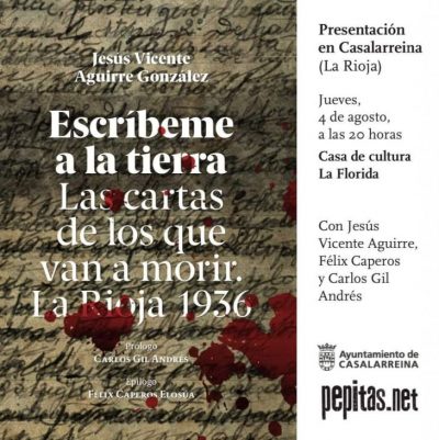 Jesús Vicente Aguirre presenta su libro “Escríbeme a la tierra. Las cartas de los que van a morir. La Rioja 1936” en Casalarreina