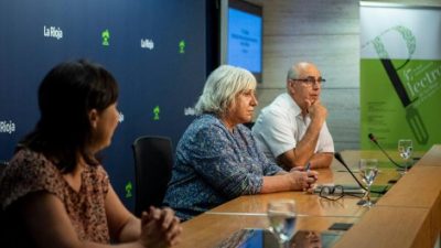 La directora general de Cultura del Gobierno de La Rioja, Ana Zabalegui, y los representantes de la Asociación Cultural ConTrastes-Rioja, Antonio Cerrajería y Patricia ...