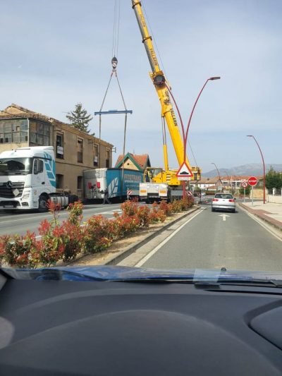 El remolque de un camión colisiona contra una casa junto a la Plaza de Toros de Haro tras atravesar el vehículo un paso peatonal sobreelevado