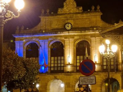 Azul y amarillo, son los colores elegidos para la iluminación ornamental de la fachada principal de la Casa Consistorial.