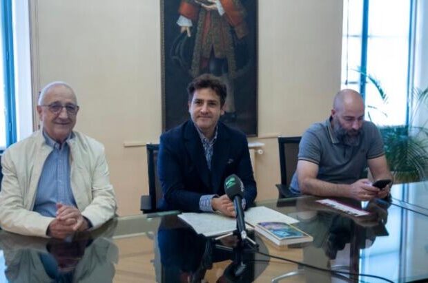 El director general de Cultura, Roberto Iturriaga, acompañado del programador de la Filmoteca Rafael Azcona, Félix Abel de la Cruz, y del director de la Compañía ...