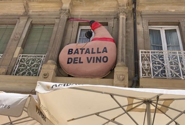 Una bota en la fachada del `Suizo´ recuerda en Haro la singular `Batalla del Vino´ suspendida por la pandemia