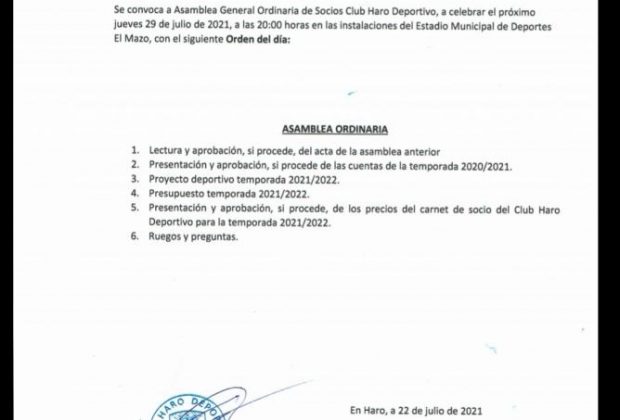El Haro aborda en Asambleas su proyecto deportivo para la temporada, las cuentas, su presupuesto y su adhesión con el Sport Club