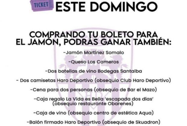 El tradicional sorteo del jamón del Haro Deportivo incluye este domingo distintos artículos