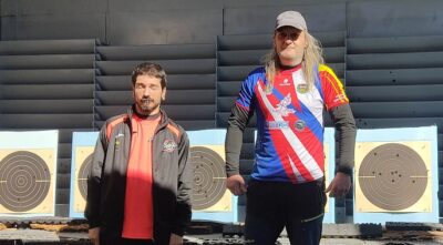 Rubén Díaz, campeón y primer clasificado, y José Antonio Hernández, tercer puesto en el primer campeonato autonómico de Pistola Velocidad
